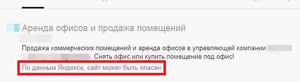 Поисковые системы также отслеживают корректную работу сайта и способны понять предоставляет ли определенный ресурс угрозу для его пользователей или нет. В случае, если поисковой робот обнаружит подозрительную активность в рамках ресурса, то в результаты поиска будет добавлено предупреждение о небезопасном сайте.