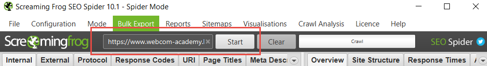 • Указываем адрес сайта, нажимаем кнопку «Start». Ждём, пока весь сайт будет просканирован.