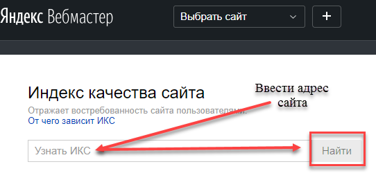 - ввести адрес сайта в графу «Узнать ИКС»;