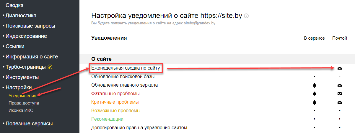 Уведомления на почту об изменении ИКС сайта можно получать в Яндекс. Вебмастере, выполнив соответствующие настройки.