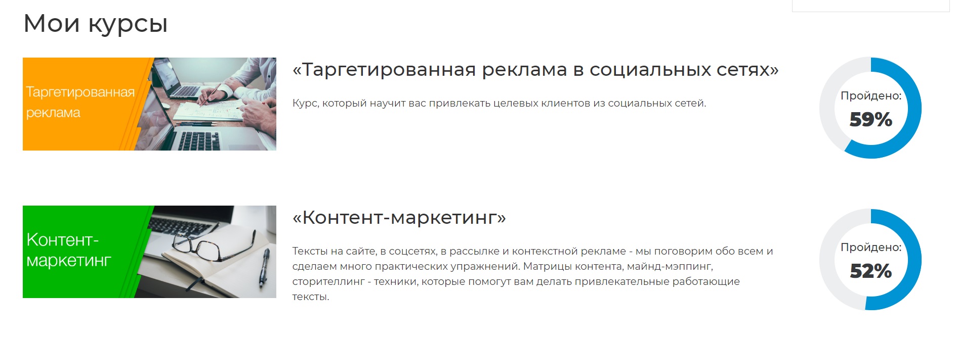 3. Шкала обучения. На странице онлайн-площадки вы сможете отслеживать время затраченное на обучение, которое будет отображено в процентах.