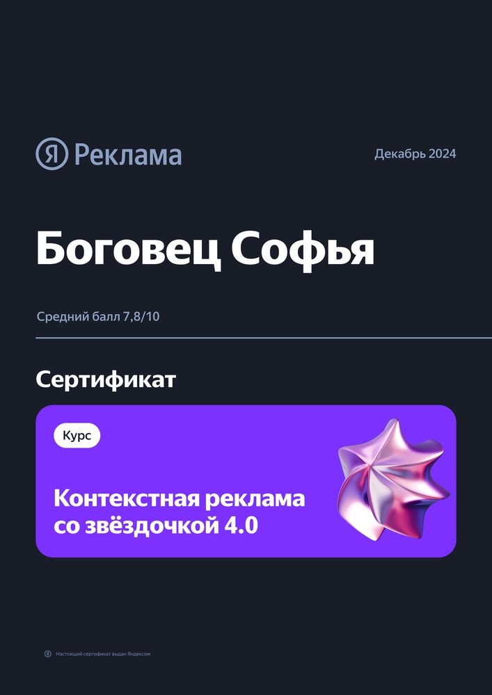 У меня больше 3 лет практического опыта в настройке контекстной и таргетированной рекламы.